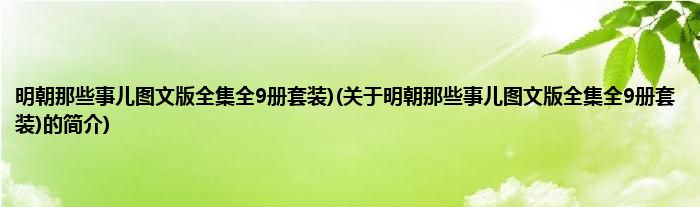 本文关于明朝那些事儿图文版全集全9册套装)的简介就讲解完毕,希望对大家有所帮助。