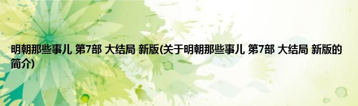 明朝那些事儿 第7部 大结局 新版(关于明朝那些事儿 第7部 大结局 新版的简介)