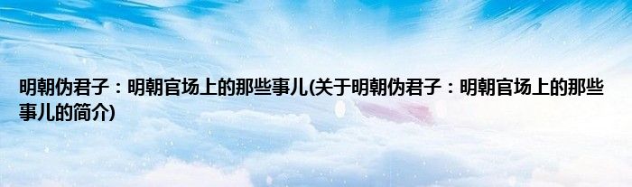 本文关于明朝伪君子:明朝官场上的那些事儿的简介就讲解完毕,希望对大家有所帮助。