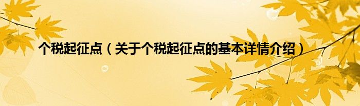 1、个人所得税起征点(正确叫法是个人所得税费用扣除标准或者免征额)是指国家为了完善税收体制,更好的进行税制改革,而制定的税收制度。