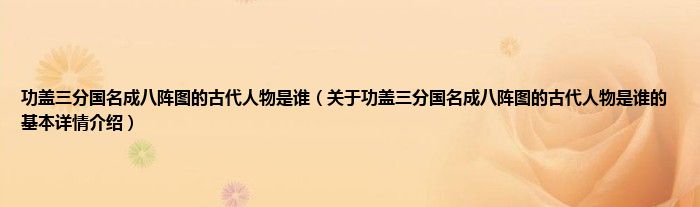 本文关于功盖三分国名成八阵图的古代人物是谁的基本详情介绍就讲解完毕,希望对大家有所帮助。