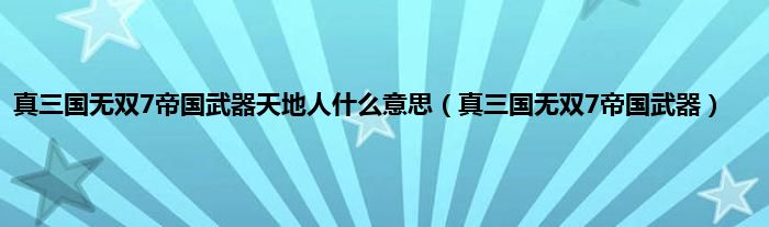 真三国无双7帝国武器天地人什么意思(真三国无双7帝国武器)