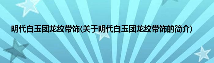 本文关于明代白玉团龙纹带饰的简介就讲解完毕,希望对大家有所帮助。