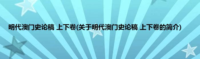 本文关于明代澳门史论稿 上下卷的简介就讲解完毕,希望对大家有所帮助。