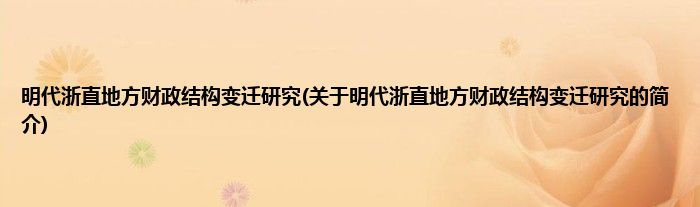 本文关于明代浙直地方财政结构变迁研究的简介就讲解完毕,希望对大家有所帮助。
