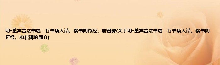 明·董其昌法书选:行书唐人诗、楷书阴符经、府君碑(关于明·董其昌法书选:行书唐人诗、楷书阴符经、府君碑的简介)
