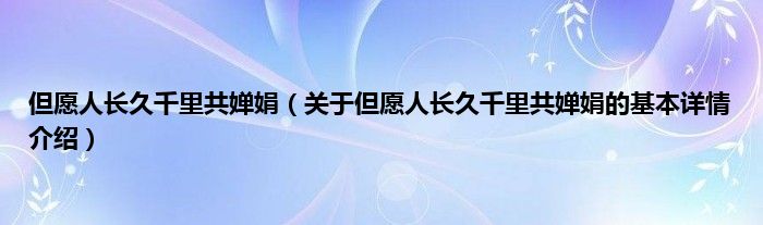 本文关于但愿人长久千里共婵娟的基本详情介绍就讲解完毕,希望对大家有所帮助。