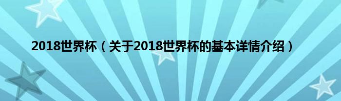本文关于2018世界杯的基本详情介绍就讲解完毕,希望对大家有所帮助。