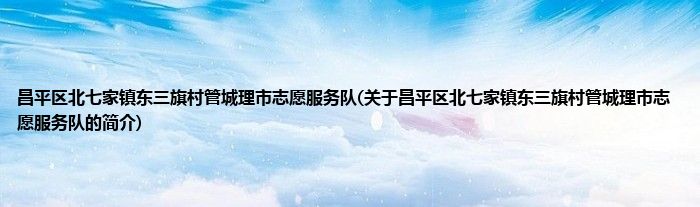 昌平区北七家镇东三旗村管城理市志愿服务队(关于昌平区北七家镇东三旗村管城理市志愿服务队的简介)