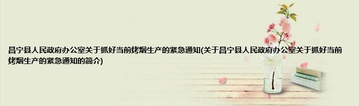 昌宁县人民政府办公室关于抓好当前烤烟生产的紧急通知(关于昌宁县人民政府办公室关于抓好当前烤烟生产的紧急通知的简介)