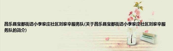 1、 昌乐县宝都街道小李家庄社区刘家辛服务队是由昌乐县社区志愿者领导下的志愿团体。