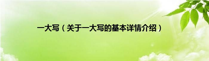 大家好我是小蝌蚪,一大写,关于一大写的基本详情介绍很多人还不知道,那么现在让我们一起来看看吧!