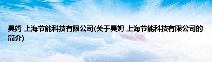 本文关于昊姆 上海节能科技有限公司的简介就讲解完毕,希望对大家有所帮助。