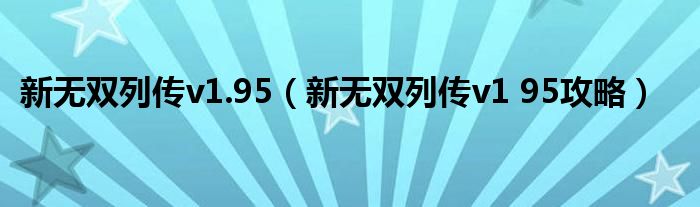 大家好,精选小编来为大家解答以上问题。新无双列传v1.95,新无双列传v1 95攻略很多人还不知道,现在让我们一起来看看吧!