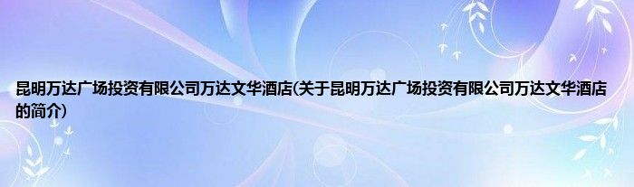 大家好,昆明万达广场投资有限公司万达文华酒店,关于昆明万达广场投资有限公司万达文华酒店的简介很多人还不知道,现在让我们一起来看看吧!