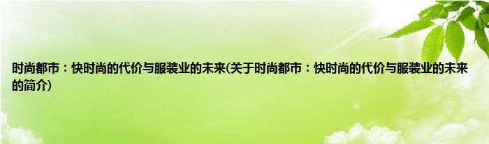 本文关于时尚都市:快时尚的代价与服装业的未来的简介就讲解完毕,希望对大家有所帮助。