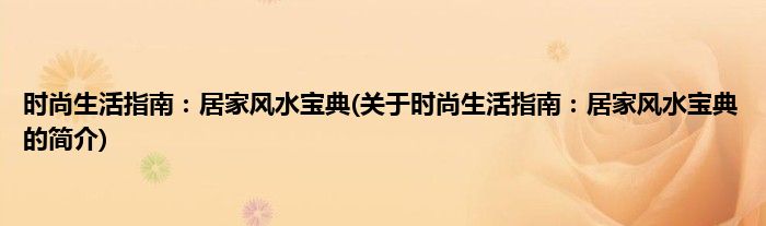 本文关于时尚生活指南:居家风水宝典的简介就讲解完毕,希望对大家有所帮助。