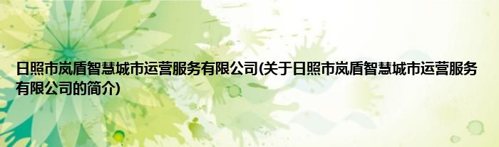 本文关于日照市岚盾智慧城市运营服务有限公司的简介就讲解完毕,希望对大家有所帮助。