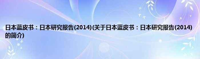 本文关于日本蓝皮书:日本研究报告(2014)的简介就讲解完毕,希望对大家有所帮助。