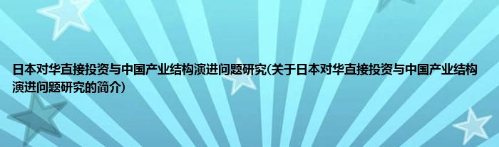 本文关于日本对华直接投资与中国产业结构演进问题研究的简介就讲解完毕,希望对大家有所帮助。