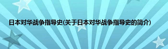 本文关于日本对华战争指导史的简介就讲解完毕,希望对大家有所帮助。