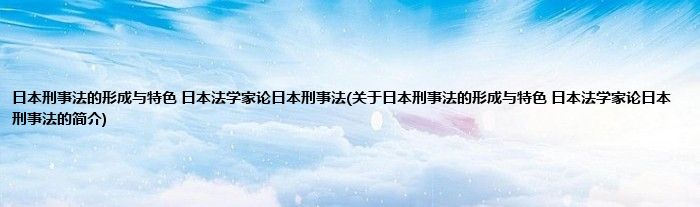 大家好,日本刑事法的形成与特色 日本法学家论日本刑事法,关于日本刑事法的形成与特色 日本法学家论日本刑事法的简介很多人还不知道,现在让我们一起来看看吧!