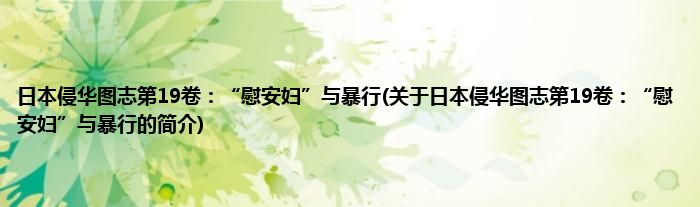 1、 《日本侵华图志第19卷:“慰安妇”与暴行》是2015年山东画报出版社出版的图书。