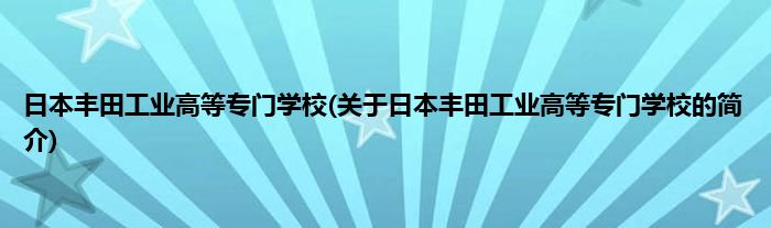 本文关于日本丰田工业高等专门学校的简介就讲解完毕,希望对大家有所帮助。