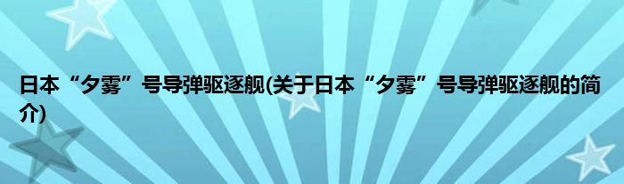 本文关于日本“夕雾”号导弹驱逐舰的简介就讲解完毕,希望对大家有所帮助。
