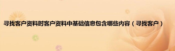 大家好,精选小编来为大家解答以上问题。寻找客户资料时客户资料中基础信息包含哪些内容,寻找客户很多人还不知道,现在让我们一起来看看吧!