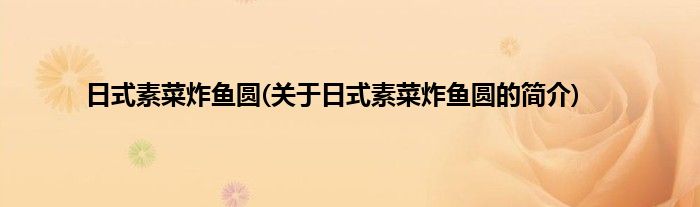本文关于日式素菜炸鱼圆的简介就讲解完毕,希望对大家有所帮助。