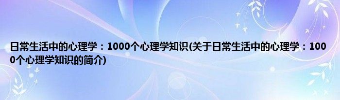 本文关于日常生活中的心理学:1000个心理学知识的简介就讲解完毕,希望对大家有所帮助。