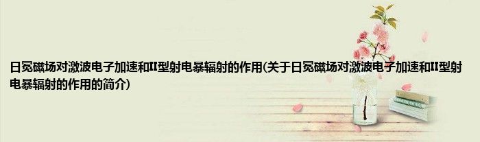 大家好,日冕磁场对激波电子加速和II型射电暴辐射的作用,关于日冕磁场对激波电子加速和II型射电暴辐射的作用的简介很多人还不知道,现在让我们一起来看看吧!