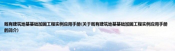 既有建筑地基基础加固工程实例应用手册(关于既有建筑地基基础加固工程实例应用手册的简介)