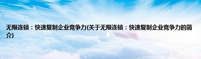 本文关于无限连锁:快速复制企业竞争力的简介就讲解完毕,希望对大家有所帮助。