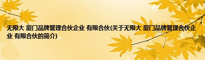 本文关于无限大 厦门品牌管理合伙企业 有限合伙的简介就讲解完毕,希望对大家有所帮助。