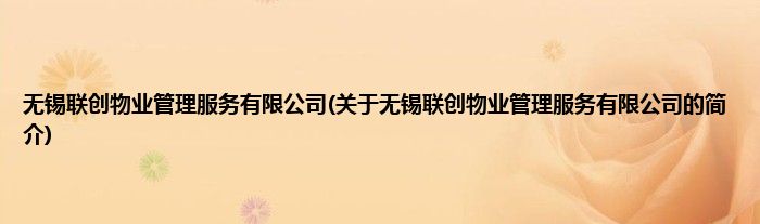 本文关于无锡联创物业管理服务有限公司的简介就讲解完毕,希望对大家有所帮助。