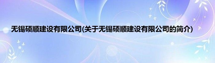 本文关于无锡硕顺建设有限公司的简介就讲解完毕,希望对大家有所帮助。