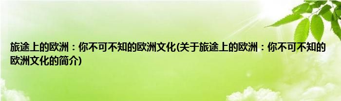 本文关于旅途上的欧洲:你不可不知的欧洲文化的简介就讲解完毕,希望对大家有所帮助。