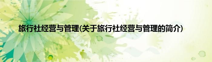 旅行社经营与管理(关于旅行社经营与管理的简介)
