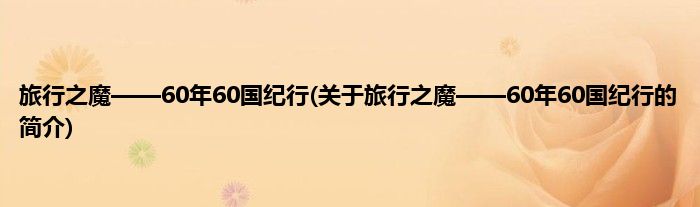 本文关于旅行之魔——60年60国纪行的简介就讲解完毕,希望对大家有所帮助。