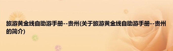 本文关于旅游黄金线自助游手册--贵州的简介就讲解完毕,希望对大家有所帮助。