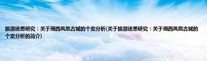 旅游迷思研究:关于湘西凤凰古城的个案分析(关于旅游迷思研究:关于湘西凤凰古城的个案分析的简介)