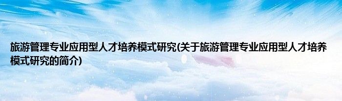 旅游管理专业应用型人才培养模式研究(关于旅游管理专业应用型人才培养模式研究的简介)