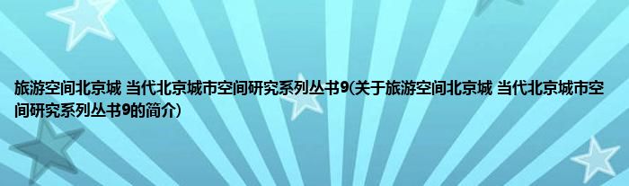 大家好,旅游空间北京城 当代北京城市空间研究系列丛书9,关于旅游空间北京城 当代北京城市空间研究系列丛书9的简介很多人还不知道,现在让我们一起来看看吧!