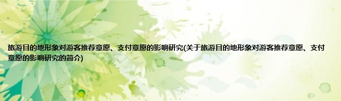 本文关于旅游目的地形象对游客推荐意愿、支付意愿的影响研究的简介就讲解完毕,希望对大家有所帮助。