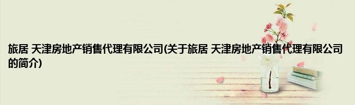 大家好,旅居 天津房地产销售代理有限公司,关于旅居 天津房地产销售代理有限公司的简介很多人还不知道,现在让我们一起来看看吧!