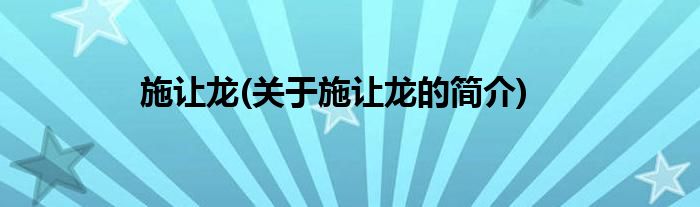 大家好,施让龙,关于施让龙的简介很多人还不知道,现在让我们一起来看看吧!