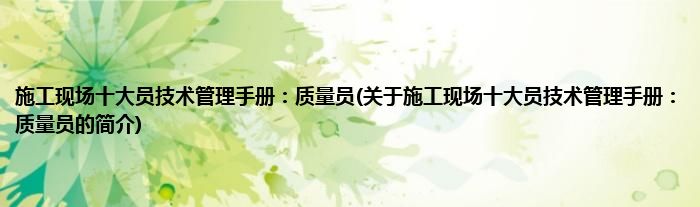 本文关于施工现场十大员技术管理手册:质量员的简介就讲解完毕,希望对大家有所帮助。