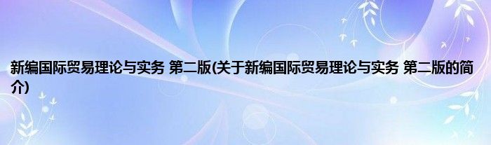 本文关于新编国际贸易理论与实务 第二版的简介就讲解完毕,希望对大家有所帮助。